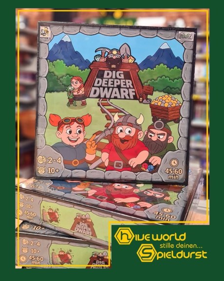 Was gibt es noch: Wir bewegen unsere Zwerge über die ausliegende Karte und schürfen in der Mine nach wertvollen Ressourcen, um diese dann im